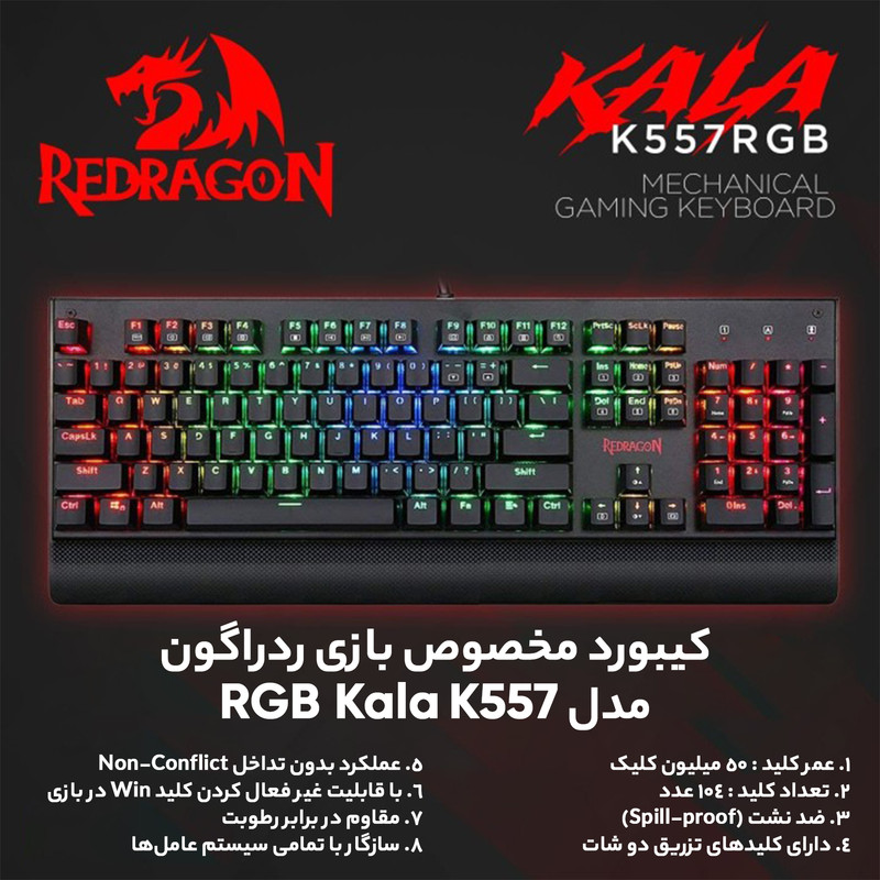 کیبورد مخصوص بازی ردراگون مدل Kala K557 RGB