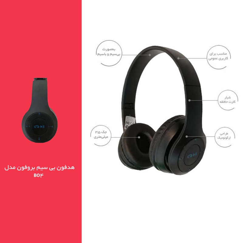 هدفون بروفون Borofone مدل BO4 ، دارای طراحی زیبا و خاصی است و گوشی های آن کاملا متناسب با گوش و سایز و استایل آن است و تقریبا تمام گوش را پوشانده و باعث خواهد شد تا گوش های شما کاملا به صدای خروجی از هدفون متمرکز شده و صدای محیطی بیرون را به سختی خواهید شنید. هدفون بروفون BO4 به دو صورت بی سیم از طریق بلوتوث نسخه 5٫0 با برد اتصال 10 متر و با سیم از طریق رابط جک 3٫5 میلی متری صدا به گوشی، تبلت، کامپیوتر و دستگاهای سازگار دیگر متصل خواهد شد.