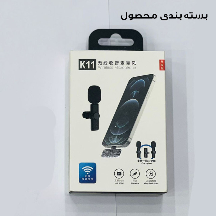 K11 Lightning یک میکروفن بی سیم یقه ای مناسب انواع گوشیهای آیفون و تبلتهای اپل میباشد . شعاع عملکرد این میکرفن 20 متر و مدت زمان شارژ دهی آن 10 ساعت میباشد . فقط کافیست که قطعه گیرنده را به انتهای گوشی خود ( درگاه لایتنینگ Lightening ) متصل کرده و میکروفن را روشن کنید ، بصورت کاملا خودکار فرستنده و گیرنده به یکدیگر متصل شده و شروع به کار میکنند . این دستگاه مناسب برای لایو استریمینگ ، کلاسهای آنلاین آمورشی ، ساخت ویدیو های آموزشی و تبلیغاتی و در آخر ولاگینگ میباشد .