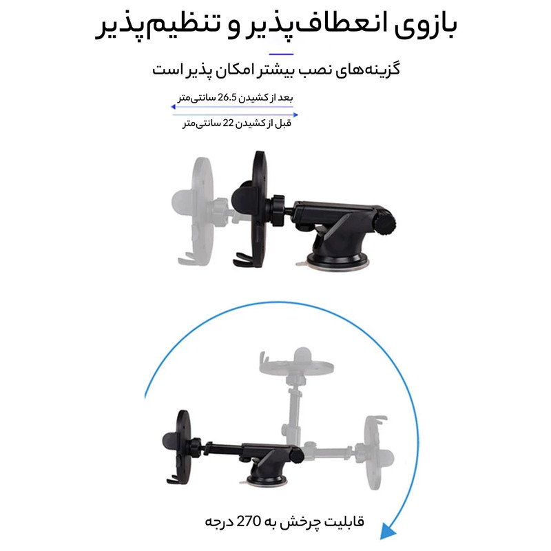 استفاده از گوشی موبایل به بخش جدانشدنی زندگی مردم تبدیل شده است. تمامی افراد تقریبا در هر لحظهای در حال استفاده از موبایل هستند. یکی از این موارد استفاده از موبایل حین رانندگی است. شما گاها نیاز دارید تا به تماسهایتان پاسخ دهید، تماس تصویری برقرار کنید یا از نقشه مسیریابی استفاده کنید. شرکت پرووان با بررسی نیاز مردم اقدام به طراحی و تولید نگهدارنده گوشی موبایل PHL1125 کرده است. هولدر پرووان PHL1150 قابلیت چرخش 360 درجه را دارد که به راحتی میتوانید آن را بچرخانید و در هر زاویه ای از آن استفاده کنید. بهدلیل باریک بودن این هولدر حجم کلی صفحه نمایش کاملا قابل رویت است و بهراحتی میتوان با یک دست با آن کار کرد.