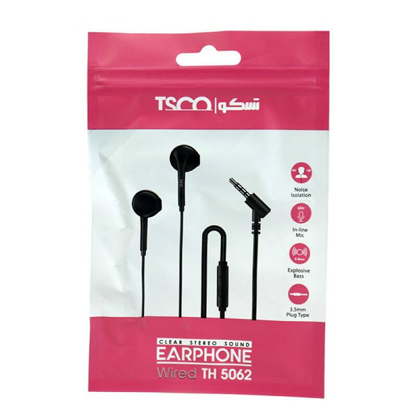 هندزفری تسکو مدل TH 5062 یک ایرفون با سیم است که توسط برند تسکو طراحی و تولید شده است. جنس استفاده شده از این هندزفری PVC است و طول کابل آن به 1.2 متر می رسد. رابط اتصال ایرفون سیمی تسکو TH5062 از طریق جک 3.5 میلی متری صدا(AUX) می باشد. فرکانس پاسخگویی هدفون سیمی تسکو TH -5062 از 20 هرتز تا 20 هزار هرتز است که یک میزان استاندارد و قابل قبول می باشد. هم اکنون می توانید برای خرید هندزفری تسکو مدل TH 5062 از همین صفحه اقدام نموده و محصول را به سبد خرید خود اضافه نمایید.