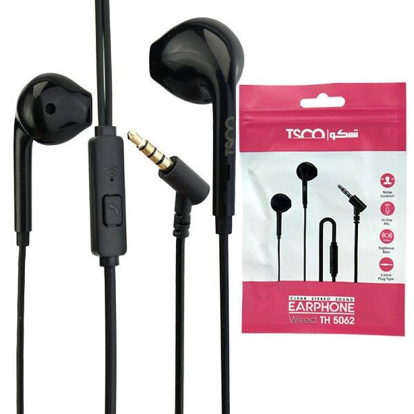 هندزفری تسکو مدل TH 5062 یک ایرفون با سیم است که توسط برند تسکو طراحی و تولید شده است. جنس استفاده شده از این هندزفری PVC است و طول کابل آن به 1.2 متر می رسد. رابط اتصال ایرفون سیمی تسکو TH5062 از طریق جک 3.5 میلی متری صدا(AUX) می باشد. فرکانس پاسخگویی هدفون سیمی تسکو TH -5062 از 20 هرتز تا 20 هزار هرتز است که یک میزان استاندارد و قابل قبول می باشد. هم اکنون می توانید برای خرید هندزفری تسکو مدل TH 5062 از همین صفحه اقدام نموده و محصول را به سبد خرید خود اضافه نمایید.